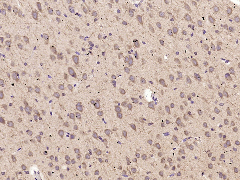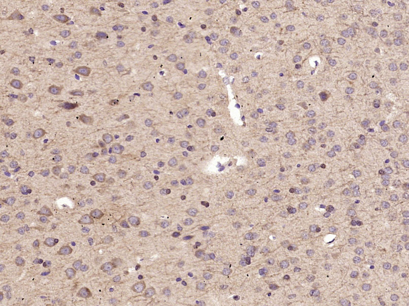 Paraformaldehyde-fixed, paraffin embedded (Mouse brain); Antigen retrieval by microwave in sodium citrate buffer (pH6.0) ; Block endogenous peroxidase by 3% hydrogen peroxide for 30 minutes; Blocking buffer (3% BSA) at RT for 30min; Antibody incubation with (ABCG1) Polyclonal Antibody, Unconjugated (bs-1231R) at 1:400 overnight at 4°C, followed by conjugation to the secondary antibody (labeled with HRP)and DAB staining.