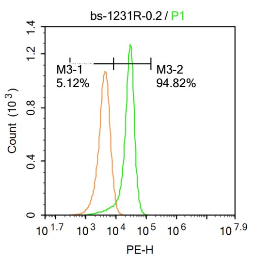 Primary Antibody (green line): Rabbit Anti-ABCG1 antibody (bs-1231R)