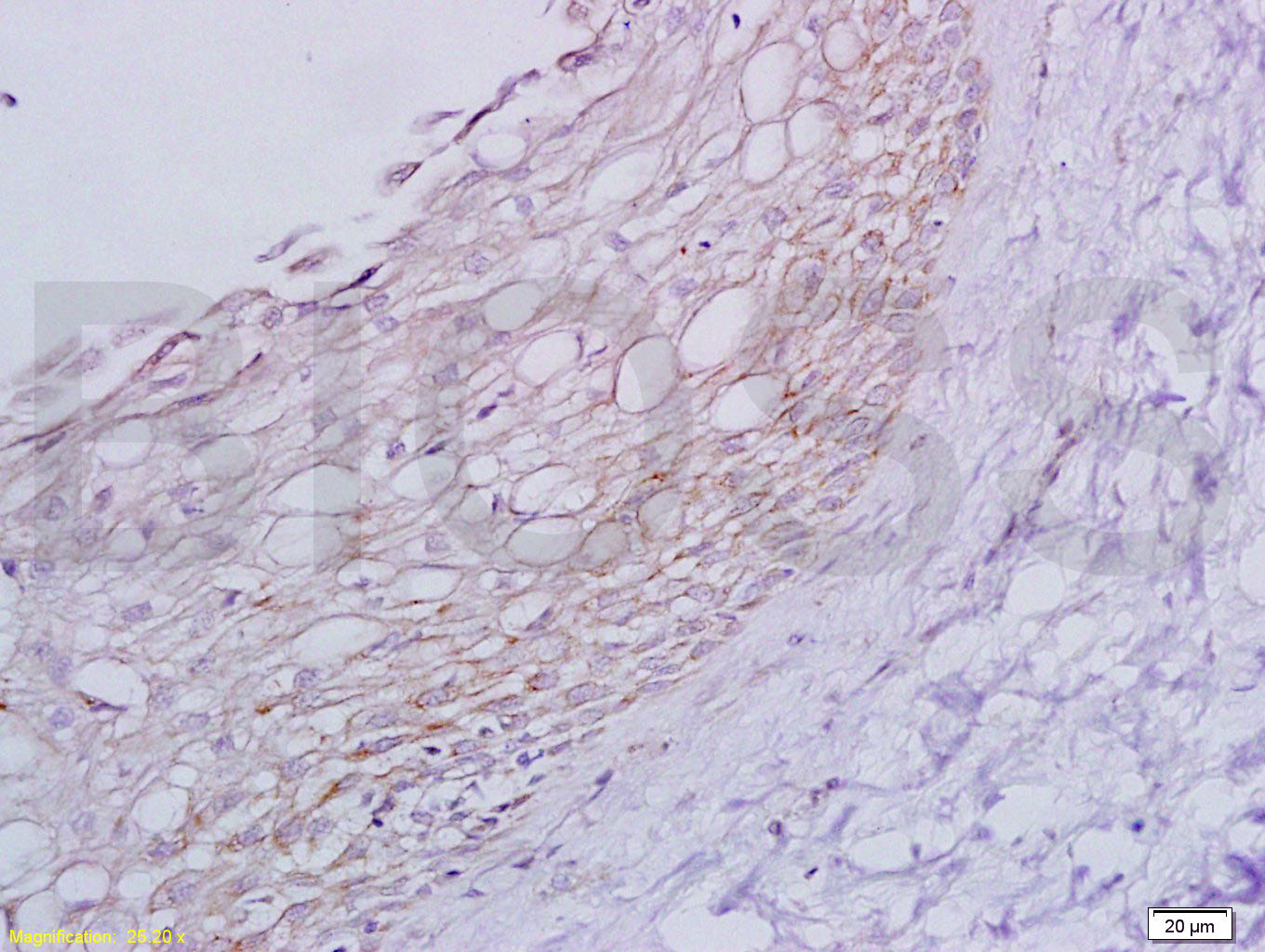 Antigen retrieval: citrate buffer ( 0.01M, pH 6.0 ), Boiling bathing for 15min; Block endogenous peroxidase by 3% Hydrogen peroxide for 30min; Blocking buffer (normal goat serum,C-0005) at 37℃ for 20 min;