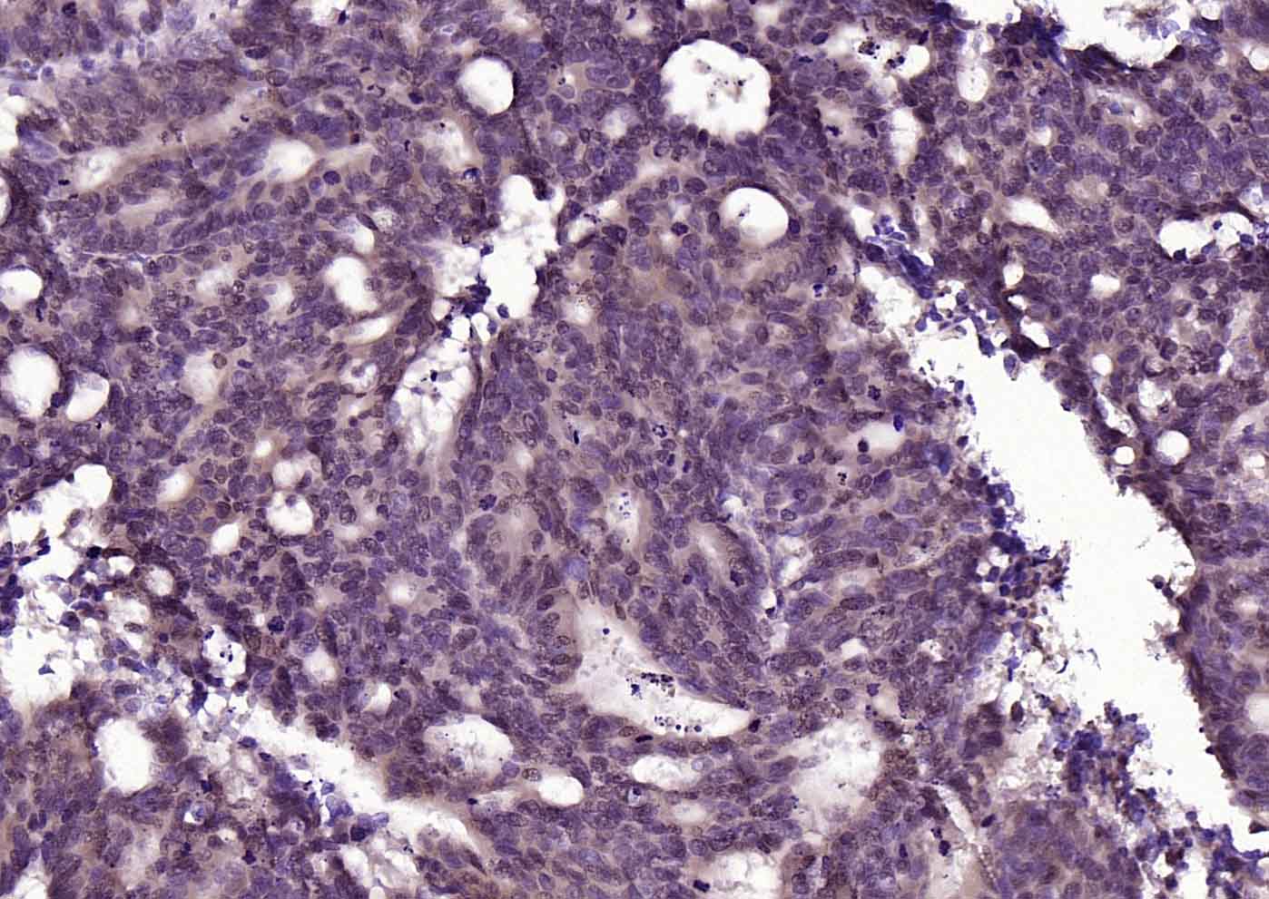Paraformaldehyde-fixed, paraffin embedded (human colon carcinoma); Antigen retrieval by boiling in sodium citrate buffer (pH6.0) for 15min; Block endogenous peroxidase by 3% hydrogen peroxide for 20 minutes; Blocking buffer (normal goat serum) at 37°C for 30min; Incubation with (ATF2 ) Polyclonal Antibody, Unconjugated (bs-0518R) at 1:200 overnight at 4°C, followed by operating according to SP Kit(Rabbit) (sp-0023) instructionsand DAB staining.