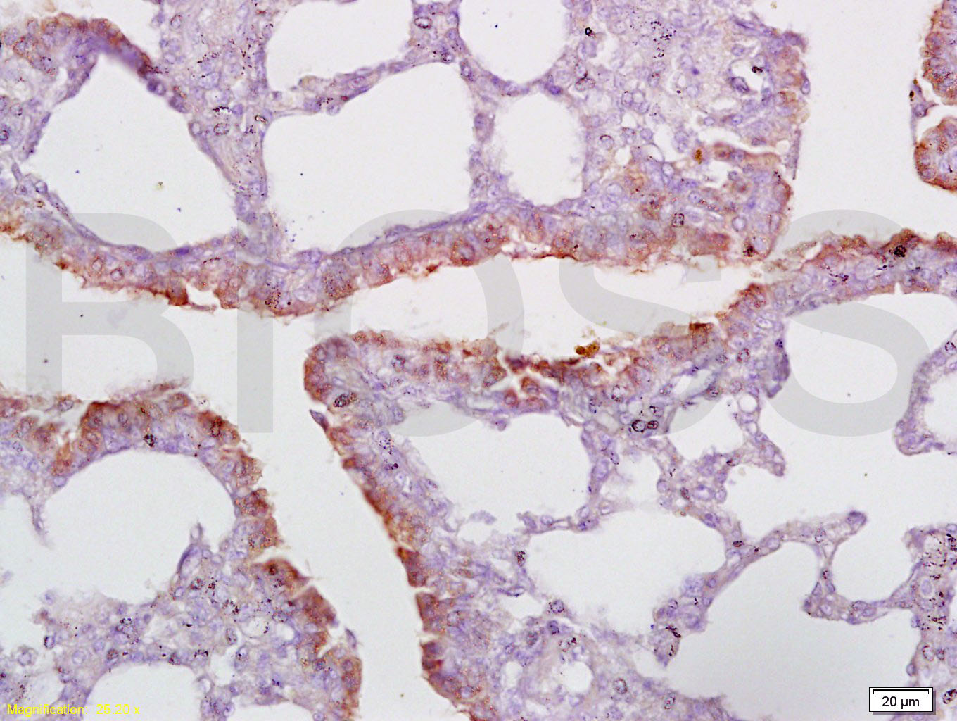 Antigen retrieval: citrate buffer ( 0.01M, pH 6.0 ), Boiling bathing for 15min; Block endogenous peroxidase by 3% Hydrogen peroxide for 30min; Blocking buffer (normal goat serum,C-0005) at 37℃ for 20 min;