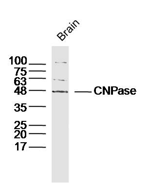 Paraformaldehyde-fixed, paraffin embedded (Rat brain); Antigen retrieval by boiling in sodium citrate buffer (pH6.0) for 15min; Block endogenous peroxidase by 3% hydrogen peroxide for 20 minutes; Blocking buffer (normal goat serum) at 37°C for 30min; Antibody incubation with (CNPase) Polyclonal Antibody, Unconjugated (bs-1000R) at 1:400 overnight at 4°C, followed by a conjugated secondary (sp-0023) for 20 minutes and DAB staining.
