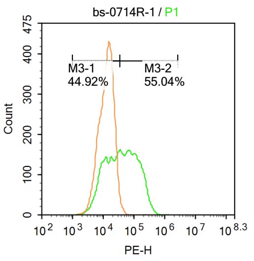 Primary Antibody (green line): Rabbit Anti-HPV16 E7 antibody (bs-0714R)