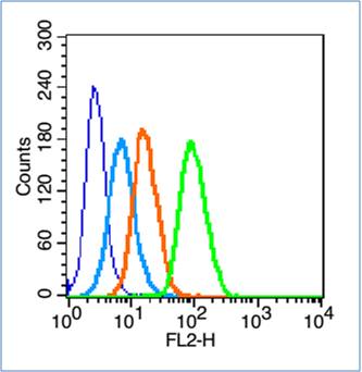Secondary Antibody (white blue line): Goat anti-rabbit IgG-PE