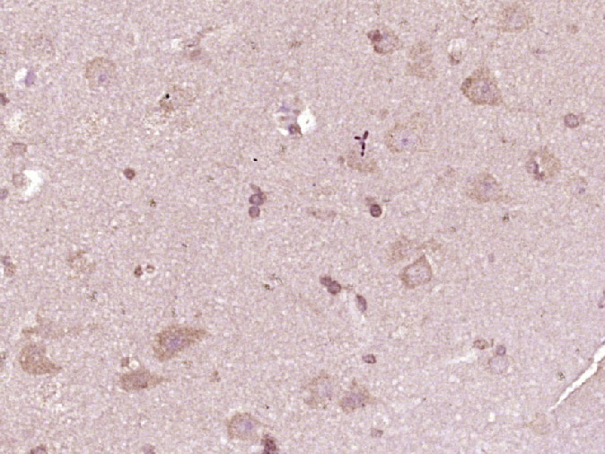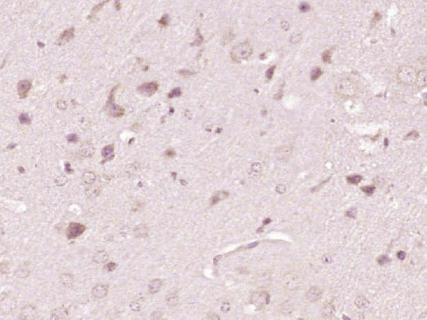 Paraformaldehyde-fixed, paraffin embedded (Rat brain); Antigen retrieval by boiling in sodium citrate buffer (pH6.0) for 15min; Block endogenous peroxidase by 3% hydrogen peroxide for 20 minutes; Blocking buffer (normal goat serum) at 37°C for 30min; Antibody incubation with (ATP7A) Polyclonal Antibody, Unconjugated (bs-1572R) at 1:400 overnight at 4°C, followed by operating according to SP Kit(Rabbit) (sp-0023) instructionsand DAB staining.