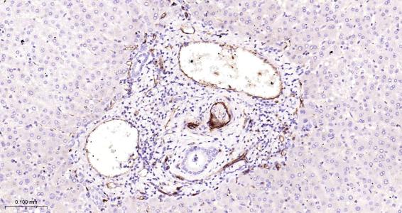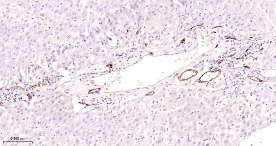Paraformaldehyde-fixed, paraffin embedded Human liver; Antigen retrieval by boiling in sodium citrate buffer (pH6.0) for 15 min; Antibody incubation with CD31 Polyclonal Antibody, Unconjugated(bs-0468R) at 1:200 overnight at 4°C, followed by conjugation to the bs-0295G-HRP and DAB (C-0010) staining.