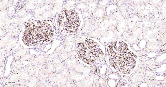 Paraformaldehyde-fixed, paraffin embedded Human kidney; Antigen retrieval by boiling in sodium citrate buffer (pH6.0) for 15 min; Antibody incubation with CD31 Polyclonal Antibody, Unconjugated(bs-0468R) at 1:200 overnight at 4°C, followed by conjugation to the bs-0295G-HRP and DAB (C-0010) staining.