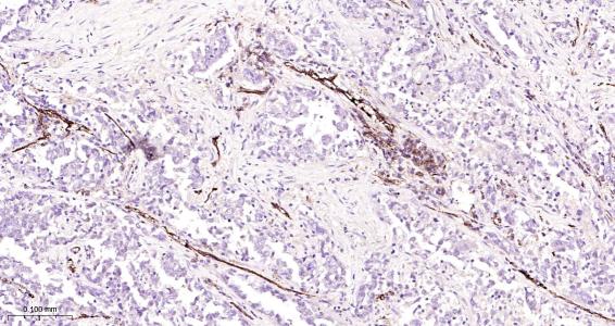 Paraformaldehyde-fixed, paraffin embedded Human lung cancer; Antigen retrieval by boiling in sodium citrate buffer (pH6.0) for 15 min; Antibody incubation with CD31 Polyclonal Antibody, Unconjugated(bs-0468R) at 1:200 overnight at 4°C, followed by conjugation to the bs-0295G-HRP and DAB (C-0010) staining.