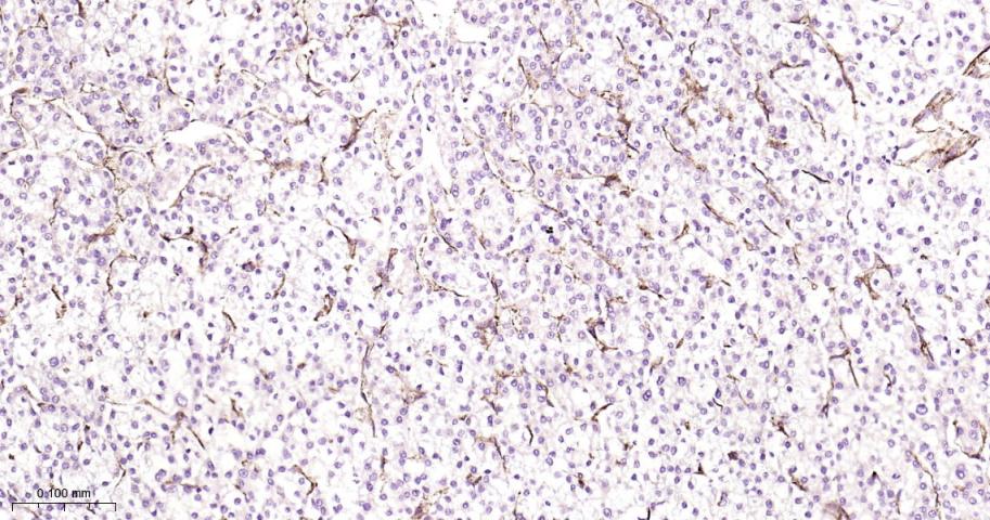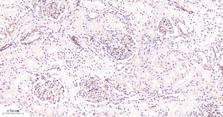 Paraformaldehyde-fixed, paraffin embedded Human Kidney; Antigen retrieval by boiling in sodium citrate buffer (pH6.0) for 15 min; Antibody incubation with CD31 Polyclonal Antibody, Unconjugated (bs-0195R) at 1:200 overnight at 4°C, followed by conjugation to the bs-0295G-HRP and DAB (C-0010) staining.