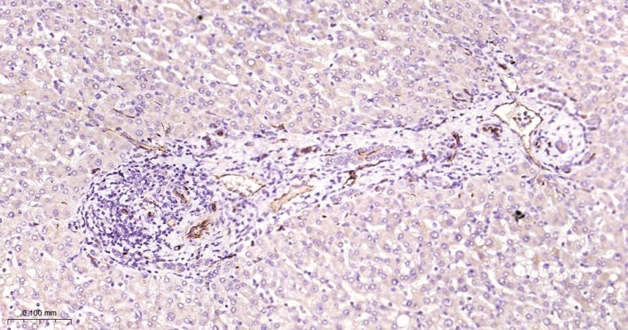 Paraformaldehyde-fixed, paraffin embedded Human Liver; Antigen retrieval by boiling in sodium citrate buffer (pH6.0) for 15 min; Antibody incubation with CD31 Polyclonal Antibody, Unconjugated (bs-0195R) at 1:200 overnight at 4°C, followed by conjugation to the bs-0295G-HRP and DAB (C-0010) staining.
