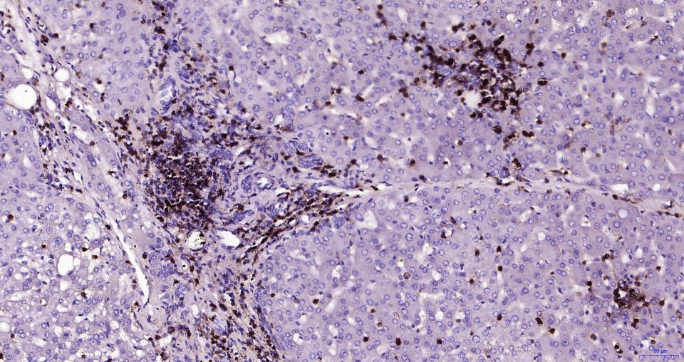 Paraformaldehyde-fixed, paraffin embedded Human Liver; Antigen retrieval by boiling in sodium citrate buffer (pH6.0) for 15 min; Antibody incubation with CD45 Polyclonal Antibody, Unconjugated (bs-0522R) at 1:200 overnight at 4°C, followed by conjugation to the bs-0295G-HRP and DAB (C-0010) staining.