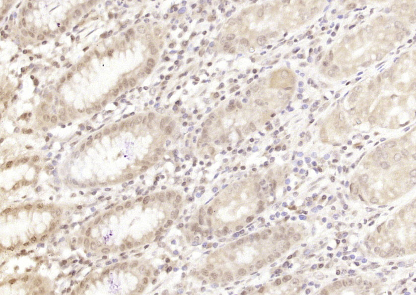 Paraformaldehyde-fixed, paraffin embedded (human gastric); Antigen retrieval by boiling in sodium citrate buffer (pH6.0) for 15min; Block endogenous peroxidase by 3% hydrogen peroxide for 20 minutes; Blocking buffer (normal goat serum) at 37°C for 30min; Antibody incubation with (Cytokeratin 4) Polyclonal Antibody, Unconjugated (bs-1006R) at 1:200 overnight at 4°C, followed by operating according to SP Kit(Rabbit) (sp-0023) instructionsand DAB staining.