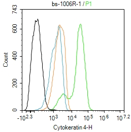 Primary Antibody (green line): Rabbit Anti-Cytokeratin 4, membrane-bound isoform antibody (bs-1006R)