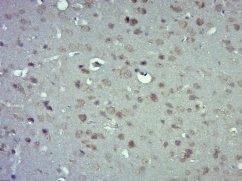 Paraformaldehyde-fixed, paraffin embedded (Mouse brain); Antigen retrieval by boiling in sodium citrate buffer (pH6.0) for 15min; Block endogenous peroxidase by 3% hydrogen peroxide for 20 minutes; Blocking buffer (normal goat serum) at 37°C for 30min; Antibody incubation with (Connexin 43) Polyclonal Antibody, Unconjugated (bs-0651R) at 1:400 overnight at 4°C, followed by operating according to SP Kit(Rabbit) (sp-0023) instructionsand DAB staining.