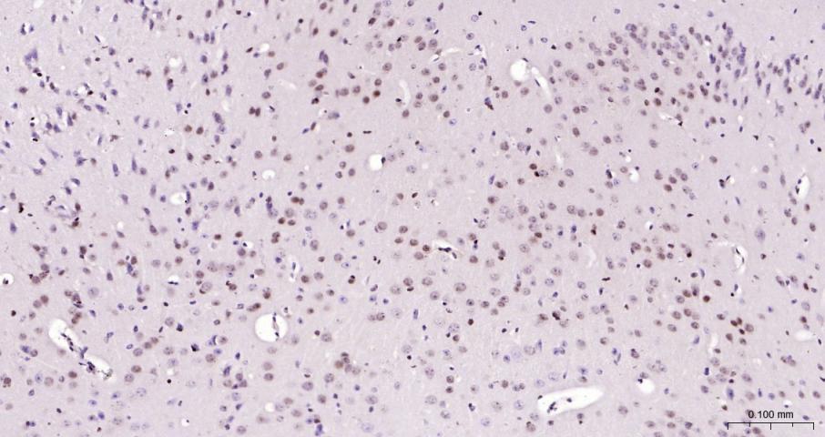 Paraformaldehyde-fixed, paraffin embedded Rat Cerebrum; Antigen retrieval by boiling in sodium citrate buffer (pH6.0) for 15 min; Antibody incubation with Cyclin D1 Polyclonal Antibody, Unconjugated (bs-0623R) at 1:200 overnight at 4°C, followed by conjugation to the bs-0295G-HRP and DAB (C-0010) staining.