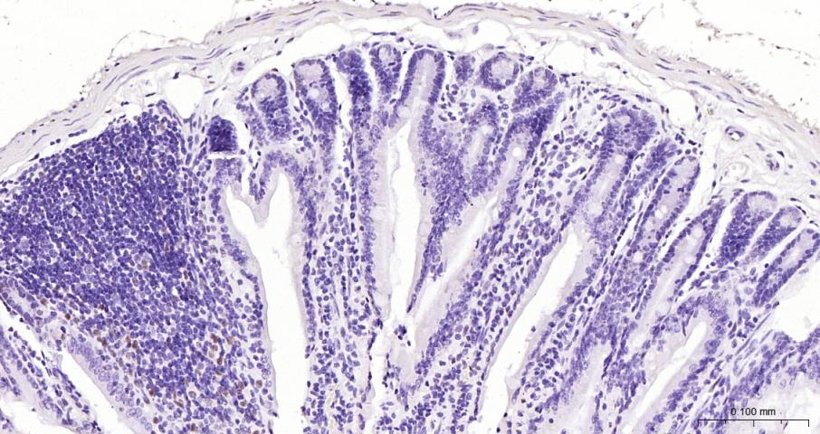 Paraformaldehyde-fixed, paraffin embedded Mouse Small Intestine; Antigen retrieval by boiling in sodium citrate buffer (pH6.0) for 15 min; Antibody incubation with Cyclin D1 Polyclonal Antibody, Unconjugated (bs-0623R) at 1:200 overnight at 4°C, followed by conjugation to the bs-0295G-HRP and DAB (C-0010) staining.
