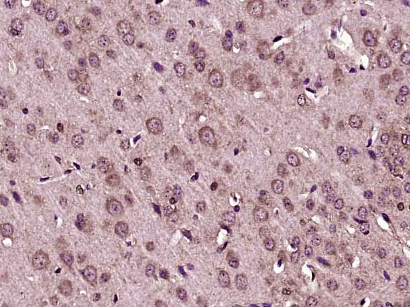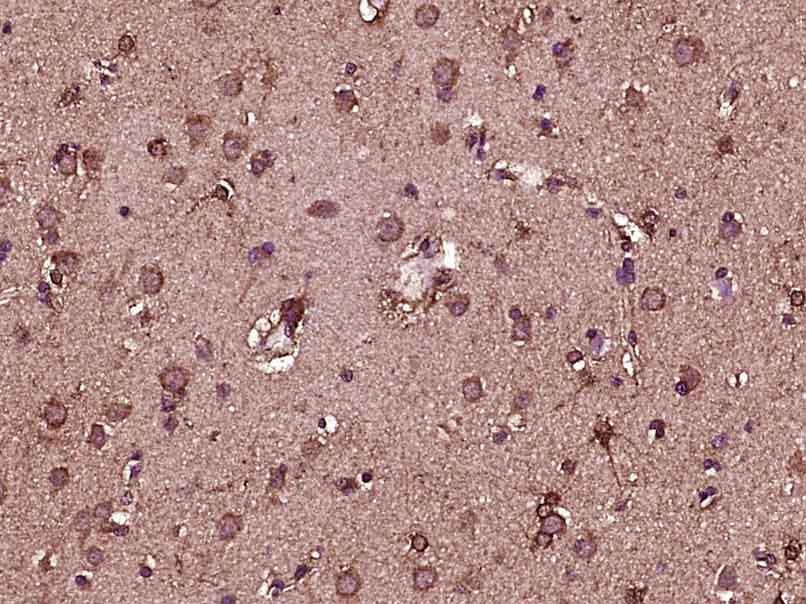 Paraformaldehyde-fixed, paraffin embedded (Mouse brain); Antigen retrieval by boiling in sodium citrate buffer (pH6.0) for 15min; Block endogenous peroxidase by 3% hydrogen peroxide for 20 minutes; Blocking buffer (normal goat serum) at 37°C for 30min; Antibody incubation with (FGF1) Polyclonal Antibody, Unconjugated (bs-0229R) at 1:400 overnight at 4°C, followed by operating according to SP Kit(Rabbit) (sp-0023) instructionsand DAB staining.