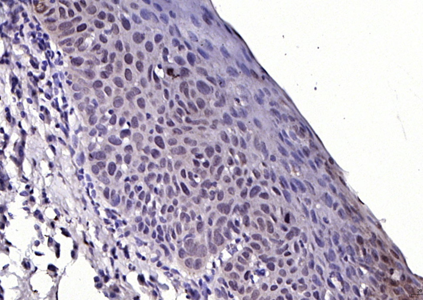 Paraformaldehyde-fixed, paraffin embedded (human laryngeal carcinoma); Antigen retrieval by boiling in sodium citrate buffer (pH6.0) for 15min; Block endogenous peroxidase by 3% hydrogen peroxide for 20 minutes; Blocking buffer (normal goat serum) at 37°C for 30min; Antibody incubation with (FGFR1) Polyclonal Antibody, Unconjugated (bs-0230R) at 1:200 overnight at 4°C, followed by operating according to SP Kit(Rabbit) (sp-0023) instructionsand DAB staining.