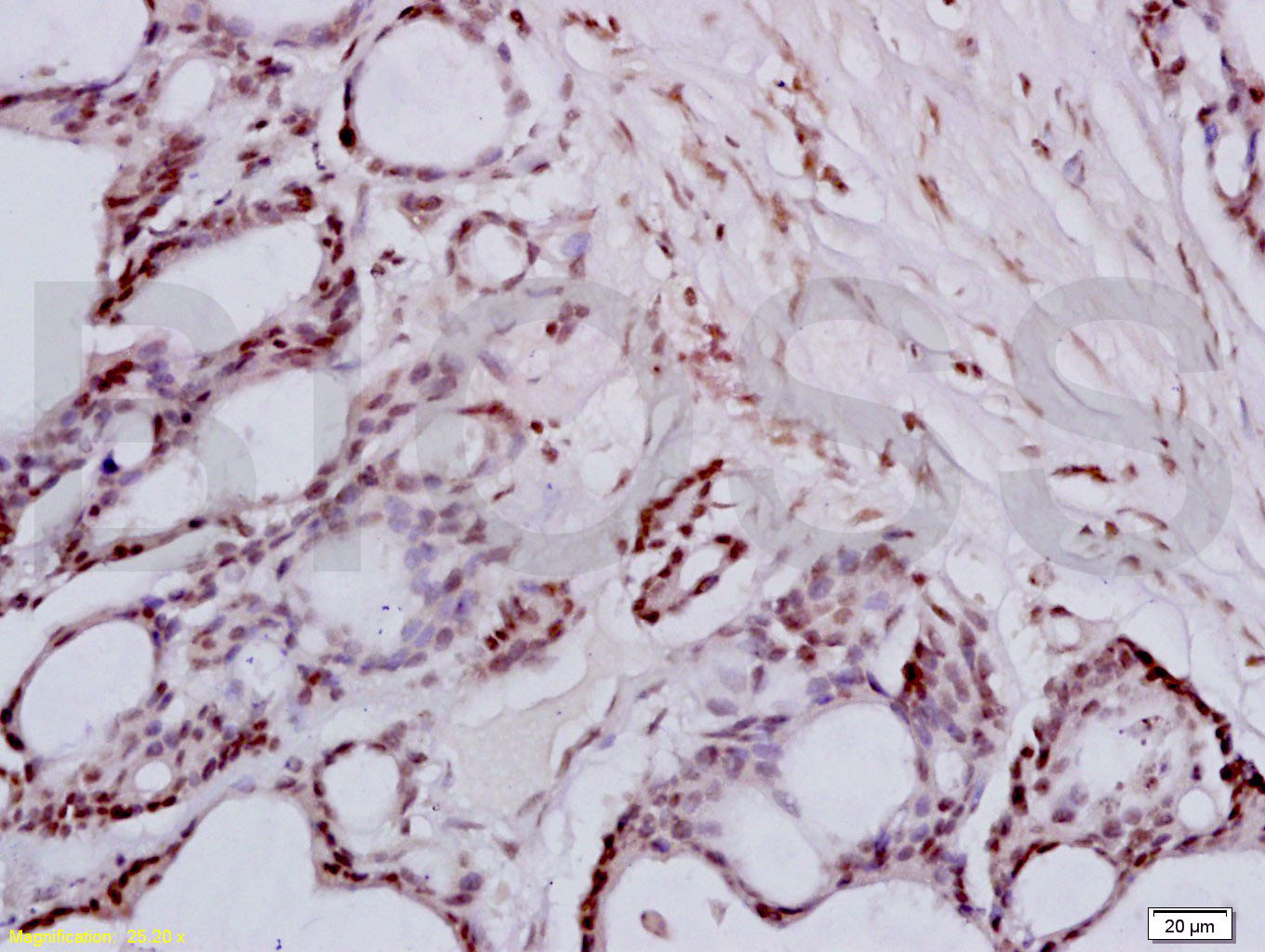 Incubation: Anti-FRA2/FOSL2 Polyclonal Antibody, Unconjugated(bs-1188R) 1:200, overnight at 4°C, followed by conjugation to the secondary antibody(SP-0023) and DAB(C-0010) staining