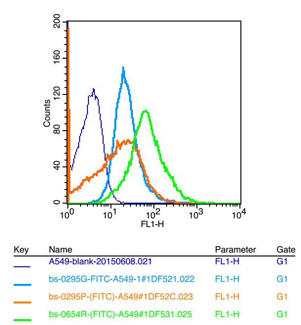 Blank control: A549(blue), the cells were fixed with 2% paraformaldehyde (10 min) .