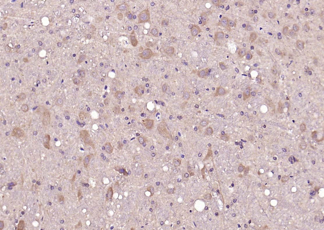 Paraformaldehyde-fixed, paraffin embedded (rat brain tissue); Antigen retrieval by boiling in sodium citrate buffer (pH6.0) for 15min; Block endogenous peroxidase by 3% hydrogen peroxide for 20 minutes; Blocking buffer (normal goat serum) at 37°C for 30min; Antibody incubation with (GCR) Polyclonal Antibody, Unconjugated (bs-0252R) at 1:400 overnight at 4°C, followed by a conjugated secondary (sp-0023) for 20 minutes and DAB staining.