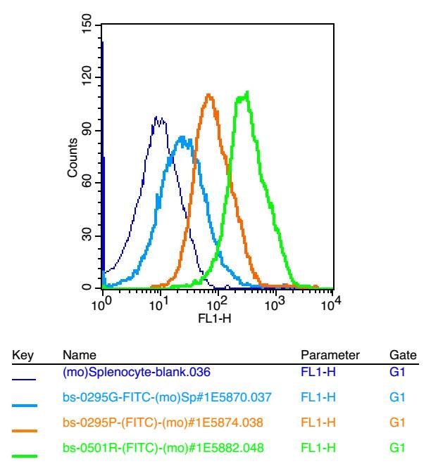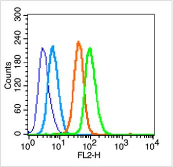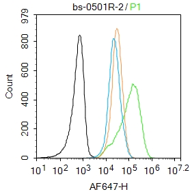 Primary Antibody (green line): Rabbit Anti-JNK1 + JNK3 antibody (bs-0501R)