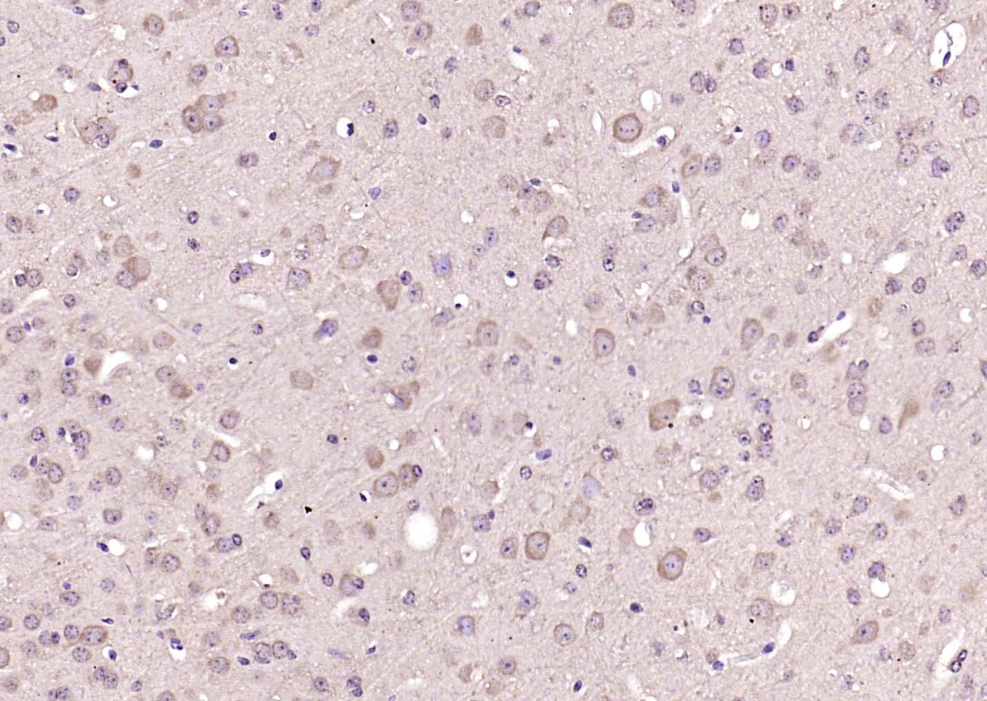 Paraformaldehyde-fixed, paraffin embedded (mouse brain); Antigen retrieval by boiling in sodium citrate buffer (pH6.0) for 15min; Block endogenous peroxidase by 3% hydrogen peroxide for 20 minutes; Blocking buffer (normal goat serum) at 37°C for 30min; Antibody incubation with (KRAS) Polyclonal Antibody, Unconjugated (bs-1033R) at 1:200 overnight at 4°C, followed by operating according to SP Kit(Rabbit) (sp-0023) instructionsand DAB staining.