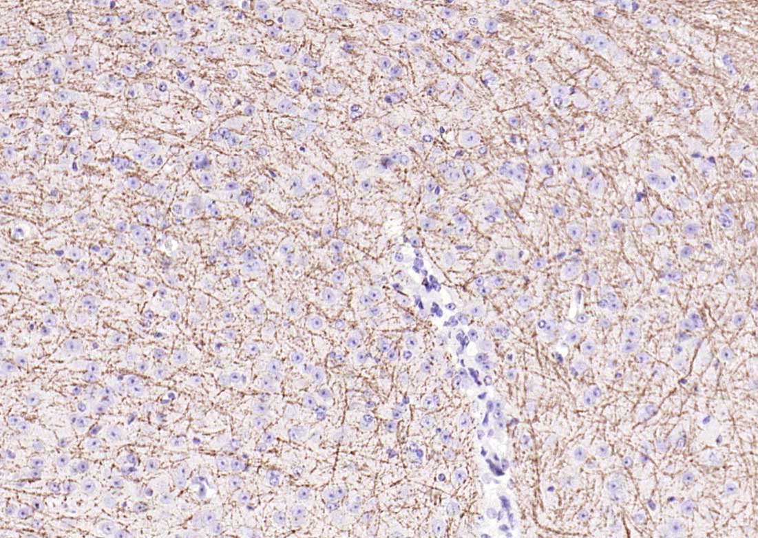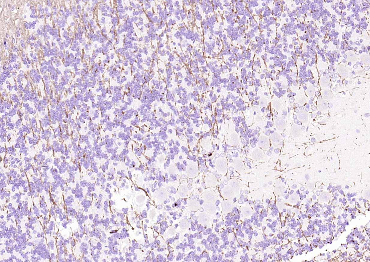 Paraformaldehyde-fixed, paraffin embedded Mouse Cerebellum; Antigen retrieval by boiling in sodium citrate buffer (pH6.0) for 15 min; Antibody incubation with MBP Polyclonal Antibody, Unconjugated (bs-0380R) at 1:200 overnight at 4°C, followed by conjugation to the SP Kit (Rabbit, SP-0023) and DAB (C-0010) staining.