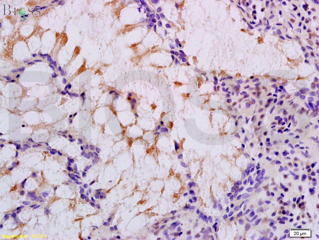 Incubation: Anti-MMP-14 Polyclonal Antibody, Unconjugated(bs-0414R) 1:200, overnight at 4°C, followed by conjugation to the secondary antibody(SP-0023) and DAB(C-0010) staining