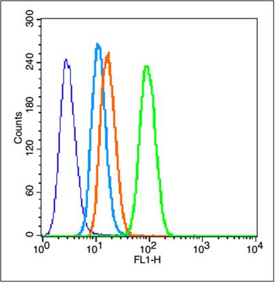 Secondary Antibody (white blue line): Goat anti-rabbit IgG-FITC,Dilution: 1μg /test.