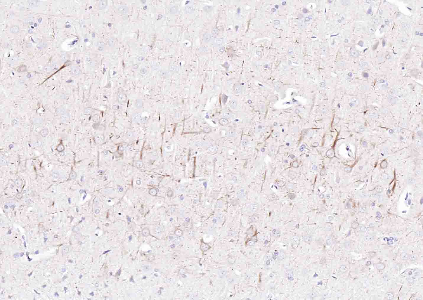 Paraformaldehyde-fixed, paraffin embedded (rat brain); Antigen retrieval by boiling in sodium citrate buffer (pH6.0) for 15min; Block endogenous peroxidase by 3% hydrogen peroxide for 20 minutes; Blocking buffer (normal goat serum) at 37°C for 30min; Antibody incubation with (NF-H) Polyclonal Antibody, Unconjugated (bs-0708R) at 1:200 overnight at 4°C, followed by operating according to SP Kit(Rabbit) (sp-0023) instructionsand DAB staining.
