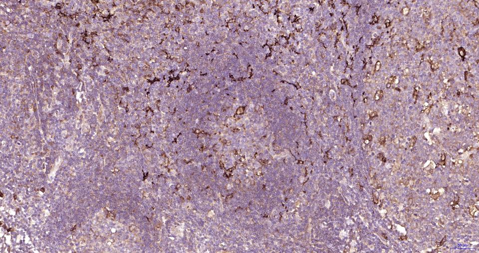 Paraformaldehyde-fixed, paraffin embedded Human Tonsil; Antigen retrieval by boiling in sodium citrate buffer (pH6.0) for 15 min; Antibody incubation with Nrf2 Polyclonal Antibody, Unconjugated (bs-1074R) at 1:200 overnight at 4°C, followed by conjugation to the SP Kit (Rabbit, SP-0023) and DAB (C-0010) staining.
