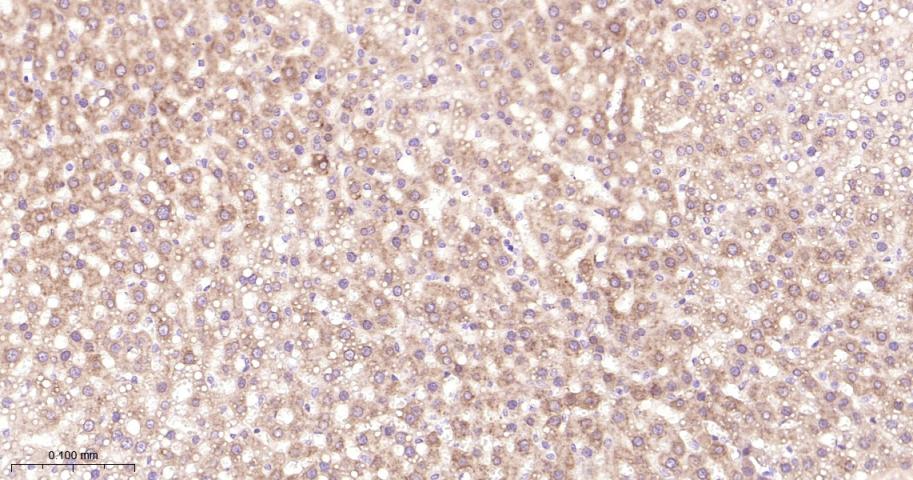 Paraformaldehyde-fixed, paraffin embedded Rat Liver; Antigen retrieval by boiling in sodium citrate buffer (pH6.0) for 15 min; Antibody incubation with Nrf2 Polyclonal Antibody, Unconjugated (bs-1074R) at 1:200 overnight at 4°C, followed by conjugation to the bs-0295G-HRP and DAB (C-0010) staining.