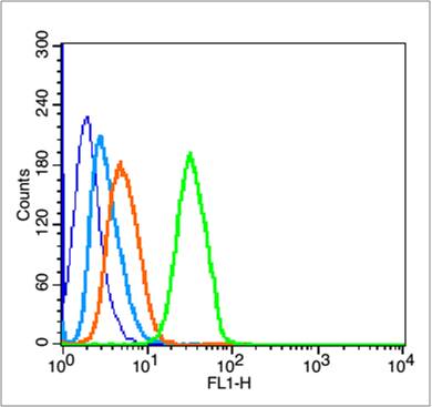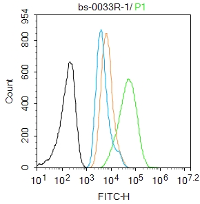 Primary Antibody (green line): Rabbit Anti-P53 protein(wt-p53) antibody (bs-0033R)