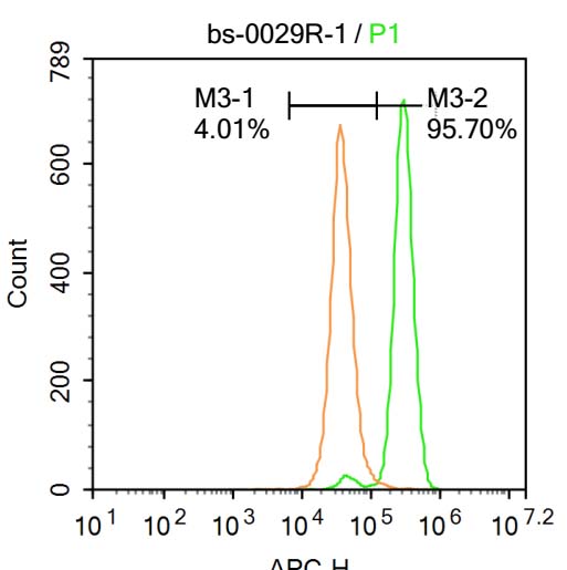 Primary Antibody (green line): Rabbit Anti-PP2A alpha + beta antibody (bs-0029R)