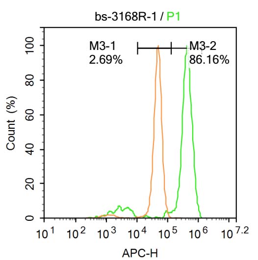 Primary Antibody (green line): Rabbit Anti-RNA Phospho-Glucocorticoid Receptor antibody (bs-3168R)