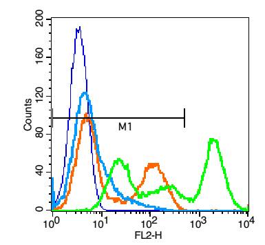The cells were fixed with 2% paraformaldehyde (10 min) . Primary antibody (bs-0805R, 1μg /1x10^6 cells) were incubated for 30 min on the ice, followed by 1 X PBS containing 0.5% BSA + 1 0% goat serum (15 min) to block non-specific protein-protein interactions. Then the Goat Anti-rabbit IgG/PE antibody was added into the blocking buffer mentioned above to react with the primary antibody at 1/200 dilution for 30 min on ice. Acquisition of 20,000 events was performed.