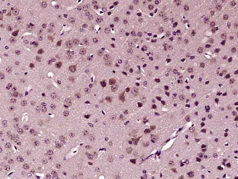 Paraformaldehyde-fixed, paraffin embedded (Mouse brain); Antigen retrieval by boiling in sodium citrate buffer (pH6.0) for 15min; Block endogenous peroxidase by 3% hydrogen peroxide for 20 minutes; Blocking buffer (normal goat serum) at 37°C for 30min; Antibody incubation with (SFRP1) Polyclonal Antibody, Unconjugated (bs-1303R) at 1:400 overnight at 4°C, followed by operating according to SP Kit(Rabbit) (sp-0023) instructionsand DAB staining.