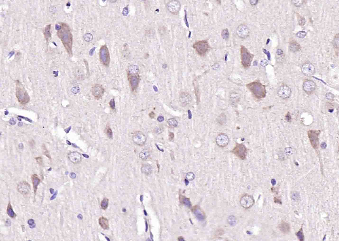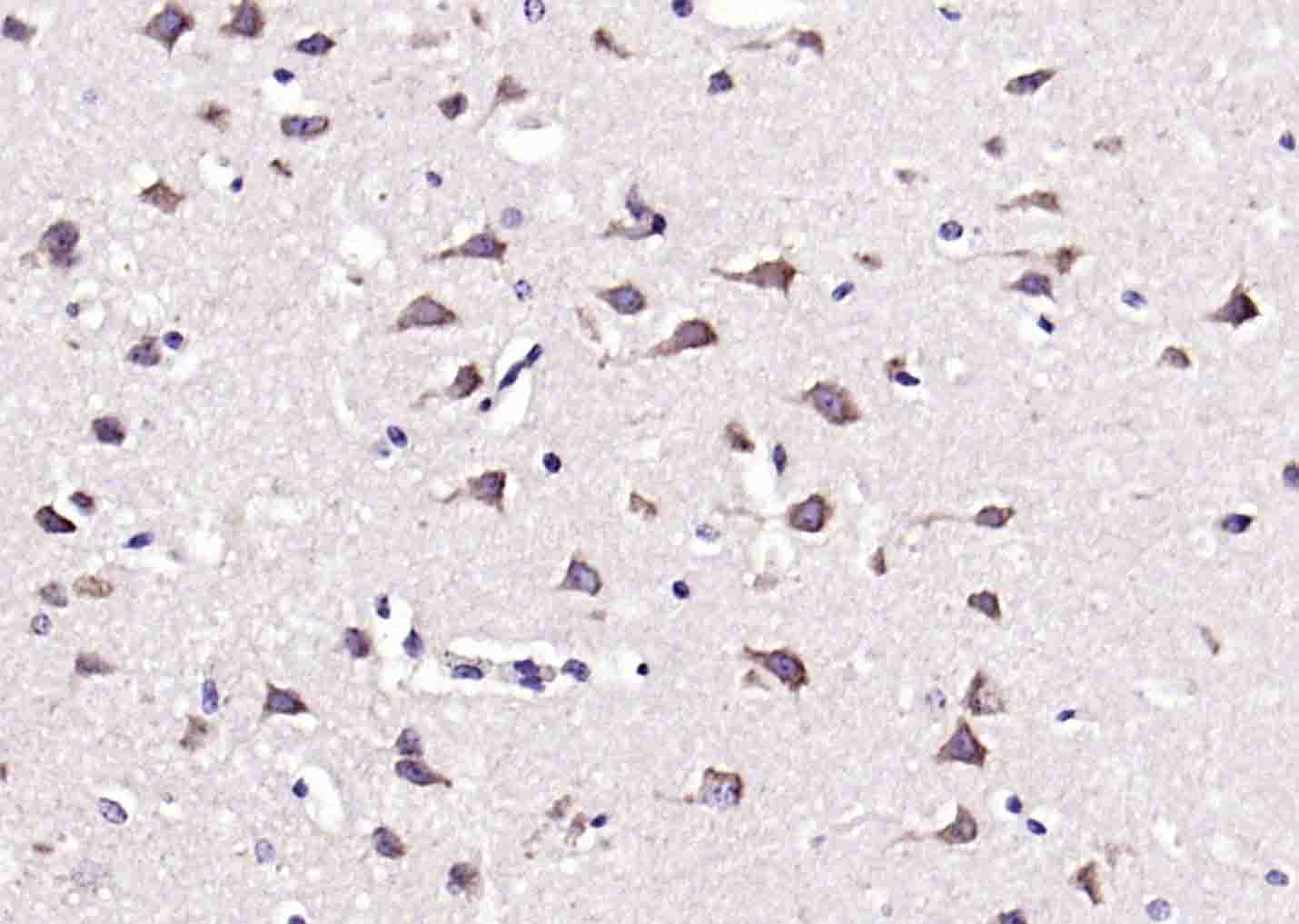Paraformaldehyde-fixed, paraffin embedded (rat brain); Antigen retrieval by boiling in sodium citrate buffer (pH6.0) for 15min; Block endogenous peroxidase by 3% hydrogen peroxide for 20 minutes; Blocking buffer (normal goat serum) at 37°C for 30min; Antibody incubation with (SFRP1) Polyclonal Antibody, Unconjugated (bs-1303R) at 1:200 overnight at 4°C, followed by operating according to SP Kit(Rabbit) (sp-0023) instructionsand DAB staining.