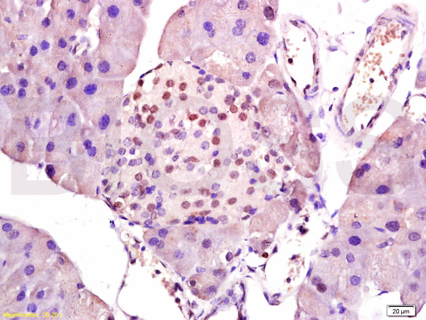 Tissue/cell: rat pancreas tissue; 4% Paraformaldehyde-fixed and paraffin-embedded;