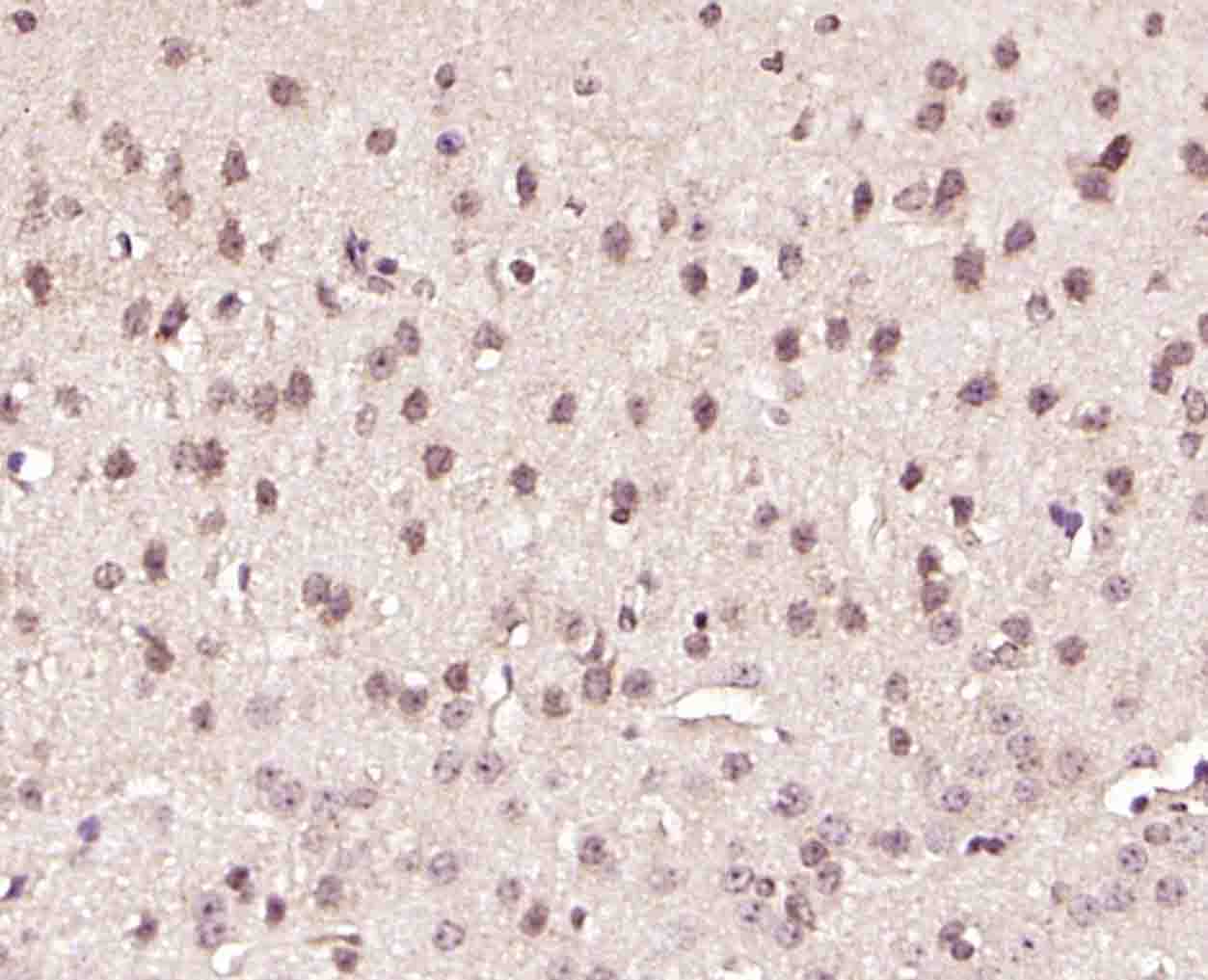 Paraformaldehyde-fixed, paraffin embedded (mouse brain); Antigen retrieval by boiling in sodium citrate buffer (pH6.0) for 15min; Block endogenous peroxidase by 3% hydrogen peroxide for 20 minutes; Blocking buffer (normal goat serum) at 37°C for 30min; Incubation with (GRP75) Polyclonal Antibody, Unconjugated (bs-1469R) at 1:200 overnight at 4°C, followed by operating according to SP Kit(Rabbit) (sp-0023) instructionsand DAB staining.