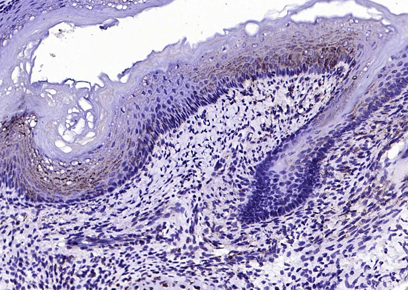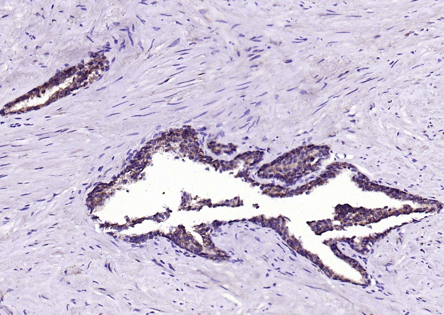 Paraformaldehyde-fixed, paraffin embedded (human prostate ); Antigen retrieval by boiling in sodium citrate buffer (pH6.0) for 15min; Block endogenous peroxidase by 3% hydrogen peroxide for 20 minutes; Blocking buffer (normal goat serum) at 37°C for 30min; Antibody incubation with (BMPR1A) Polyclonal Antibody, Unconjugated (bs-1509R) at 1:200 overnight at 4°C, followed by operating according to SP Kit(Rabbit) (sp-0023) instructionsand DAB staining.