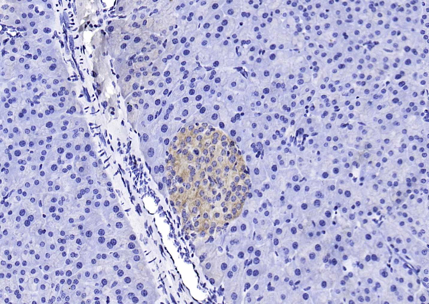 Paraformaldehyde-fixed, paraffin embedded (rat pancreas); Antigen retrieval by boiling in sodium citrate buffer (pH6.0) for 15min; Block endogenous peroxidase by 3% hydrogen peroxide for 20 minutes; Blocking buffer (normal goat serum) at 37°C for 30min; Antibody incubation with (BMPR1A) Polyclonal Antibody, Unconjugated (bs-1509R) at 1:200 overnight at 4°C, followed by operating according to SP Kit(Rabbit) (sp-0023) instructionsand DAB staining.