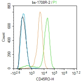 Primary Antibody (green line): Rabbit Anti-CD45RO antibody (bs-1708R)