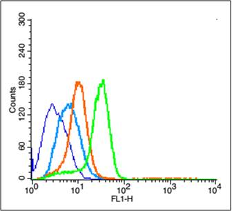 Primary Antibody (green line): Rabbit Anti-phospho-Erk1 (Thr202 + Tyr204) antibody (bs- 1645R)