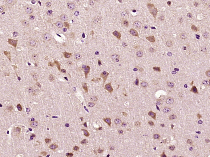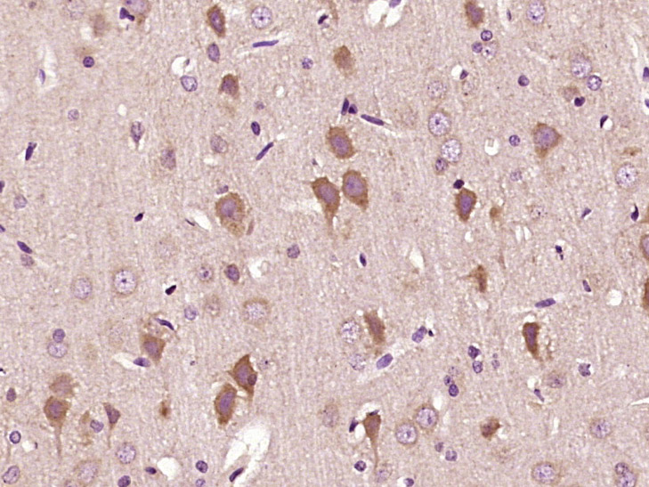 Paraformaldehyde-fixed, paraffin embedded (rat brain tissue); Antigen retrieval by boiling in sodium citrate buffer (pH6.0) for 15min; Block endogenous peroxidase by 3% hydrogen peroxide for 20 minutes; Blocking buffer (normal goat serum) at 37°C for 30min; Antibody incubation with (Mitofilin) Polyclonal Antibody, Unconjugated (bs-1824R) at 1:400 overnight at 4°C, followed by operating according to SP Kit(Rabbit) (sp-0023) instructionsand DAB staining.