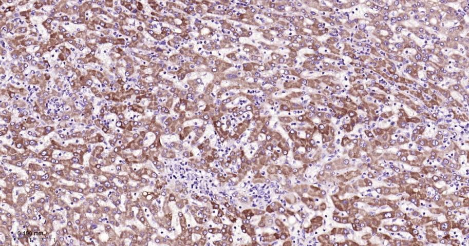 Paraformaldehyde-fixed, paraffin embedded Human Liver; Antigen retrieval by boiling in sodium citrate buffer (pH6.0) for 15 min; Antibody incubation with CPT1A Polyclonal Antibody, Unconjugated (bs-2047R) at 1:200 overnight at 4°C, followed by conjugation to the bs-0295G-HRP and DAB (C-0010) staining.