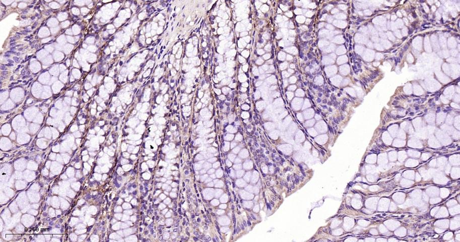 Paraformaldehyde-fixed, paraffin embedded Mouse Colon; Antigen retrieval by boiling in sodium citrate buffer (pH6.0) for 15 min; Antibody incubation with CPT1A Polyclonal Antibody, Unconjugated (bs-2047R) at 1:200 overnight at 4°C, followed by conjugation to the bs-0295G-HRP and DAB (C-0010) staining.
