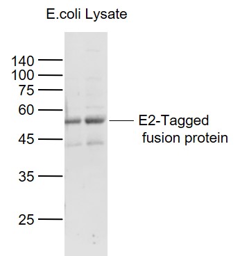 Lane 2: E2-Tagged Fusion Protein Overexpression E.coli Lysate (Cat#: bs-41403P) at 4ug