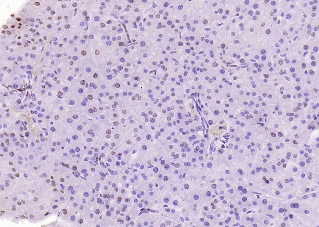 Paraformaldehyde-fixed, paraffin embedded (rat pancreas); Antigen retrieval by boiling in sodium citrate buffer (pH6.0) for 15min; Block endogenous peroxidase by 3% hydrogen peroxide for 20 minutes; Blocking buffer (normal goat serum) at 37°C for 30min; Antibody incubation with (PEG3) Polyclonal Antibody, Unconjugated (bs-1870R) at 1:200 overnight at 4°C, followed by operating according to SP Kit(Rabbit) (sp-0023) instructionsand DAB staining.